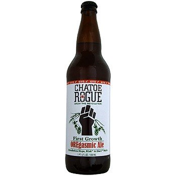 DTA SECURED BY ROGUE STATUS , Chatoe Rogue Oregasmic Ale, from Rogue Ales, is a GYO (Grow Your Own) beer, made with hops and barley grown by Rogue Ales. Orange-amber in color, malty aroma, spicy fruity hop flavor with solid malt background and lingering finish. 40 IBUs. 7% ABV. 22oz.